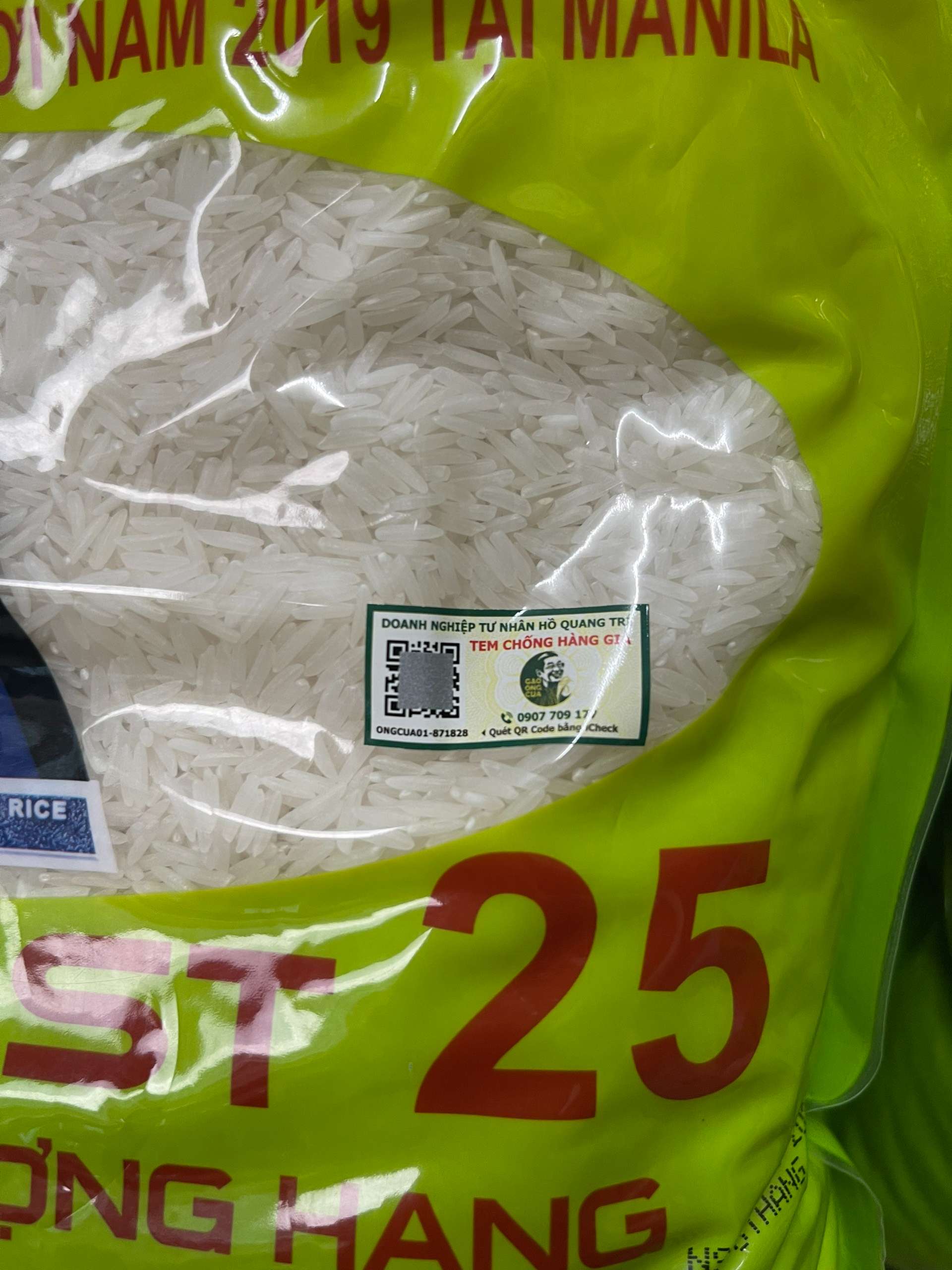 - Ở sát bên biểu tượng gạo ngon nhất thế giới có khung nhỏ có mã QR code và hình logo mới GẠO ÔNG CUA.