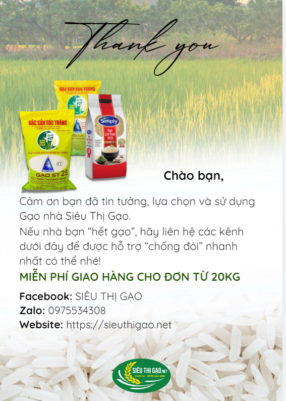 Cám ơn bạn đã tin tưởng, lựa chọn và sử dụng gạo nhà Siêu Thị Gạo